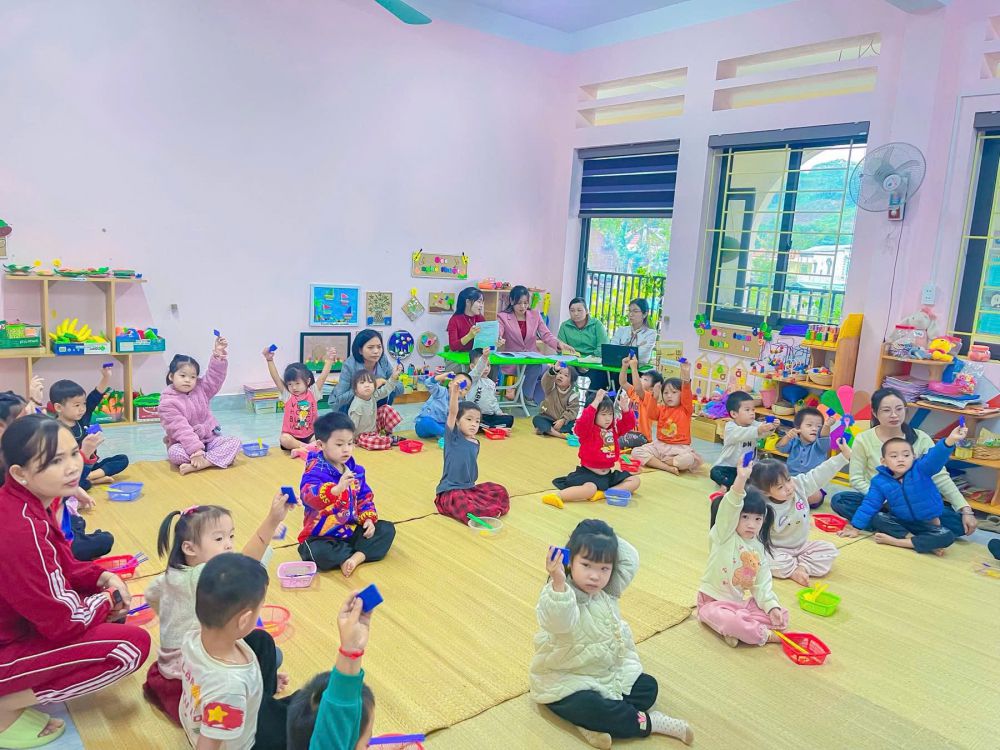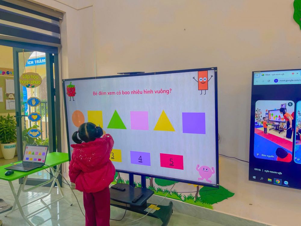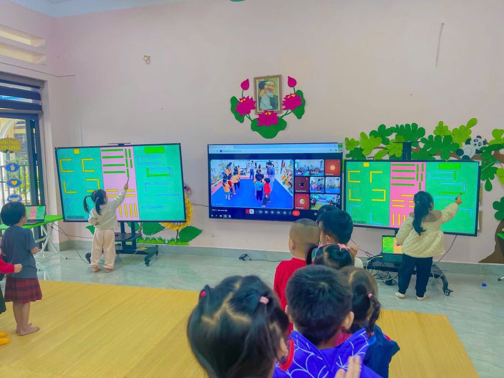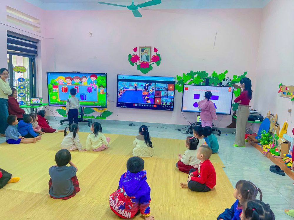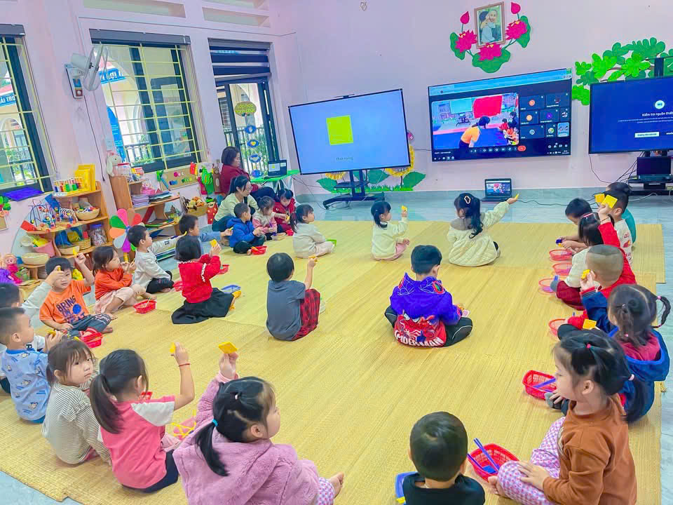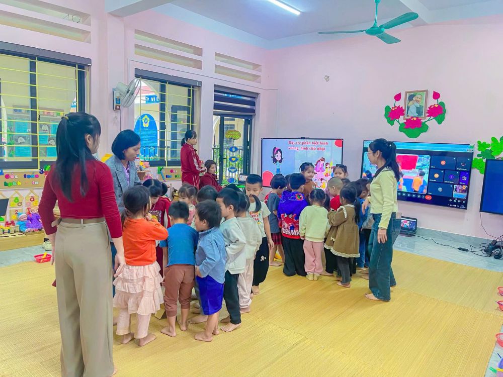 Trường Mầm non Hoa Lan thực hiện dạy học kết nối trực tuyến với các trường trên địa bàn xã tại lớp 4-5 trung tâm.